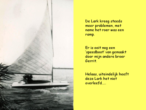 Ik ben begonnen met wat Luikinga’s op te zoeken in Hoogezand in het telefoonboek. Gelijk bij het eerste telefoontje had ik al beet. Ik vroeg of ik toevallig sprak met Luikinga die een Lark heeft gehad, de man aan de andere kant van de lijn zij spontaan: dat is mijn vader. Dat was even geluk. Ik belde gelijk het telefoonnummer dat ik gekregen had. Echter het bleek dat dit de broer was van de Larken eigenaar, maar hij had regelmatig in de Lark gevaren.